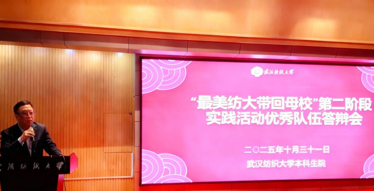 10月31日下午,第七届“把最美纺大带回母校”第二阶段暑期社会实践公开答辩在武汉纺织大学阳光校区国际学术报告厅顺利举行。本科生院院长王济平教授,学工部、校团委、本科生院招生工作相关负责人,以及部分二级学院党委副书记参加答辩会。各学院实践团队代表、学生代表参与此次活动。