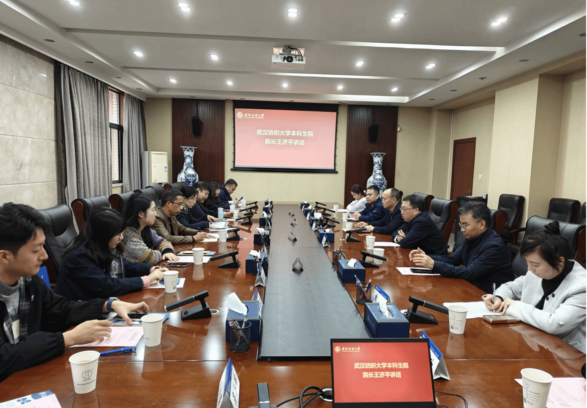 座谈会上,武汉纺织大学本科生院院长王济平就学校发展历程、学科专业特点、科学研究成果、人才培养质量、冲击国家“双一流”建设等方面,多角度全方位展示了学校的特色和优势。王济平表示,学校此次邀请洪山高中领导和骨干教师到访,既是深化校地教育合作的具体实践,也是高校主动服务基础教育、履行社会责任的生动体现,希望以此次座谈会为契机,与洪山高中进一步建立长效合作机制,深化在优质生源共建方面的路径探索。